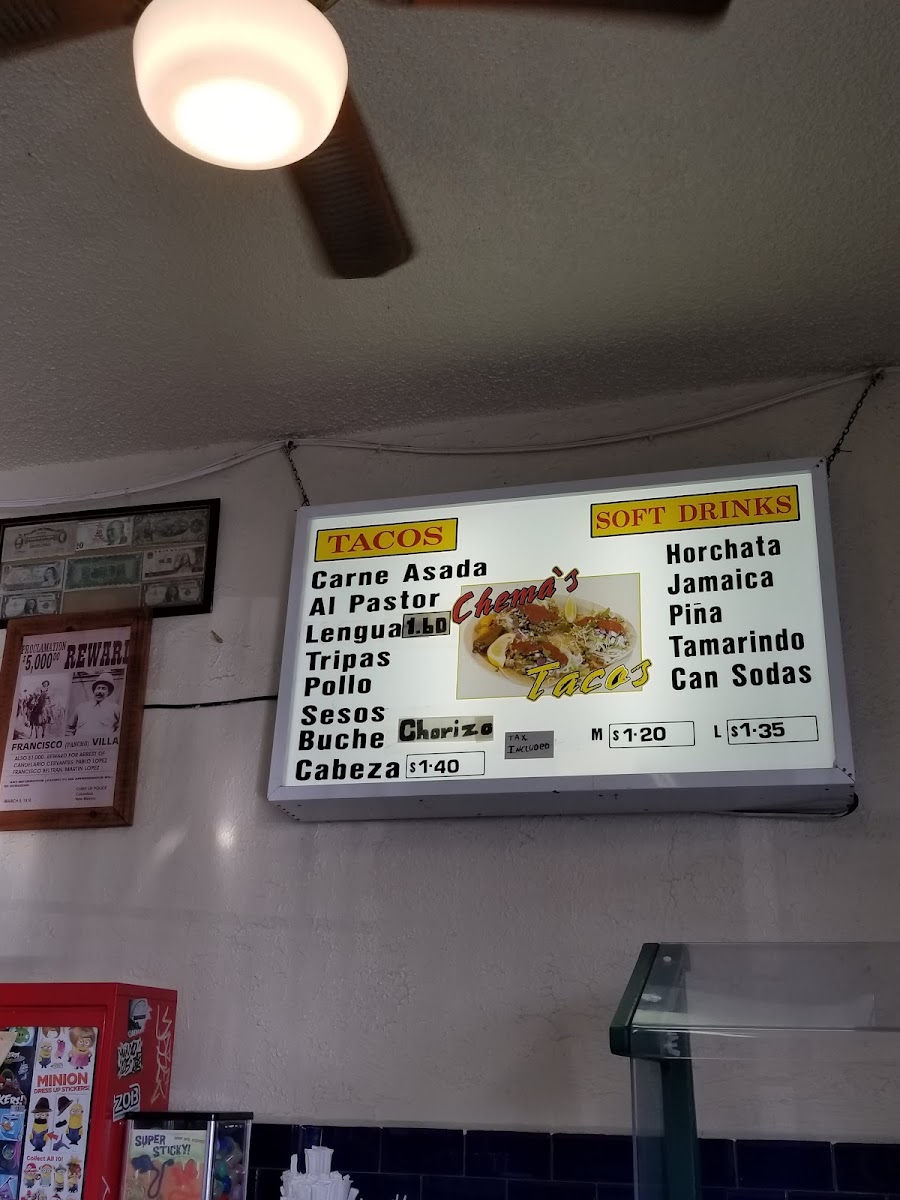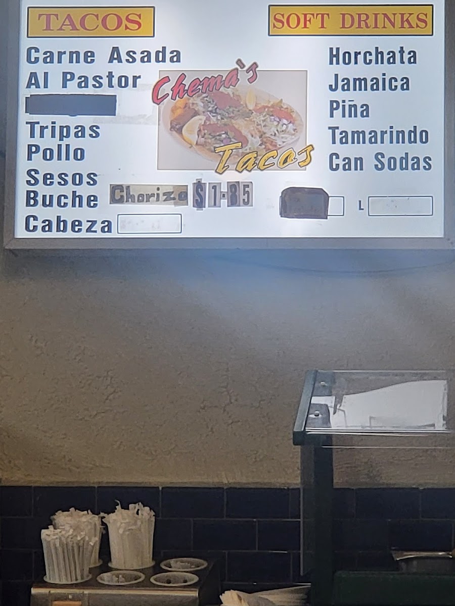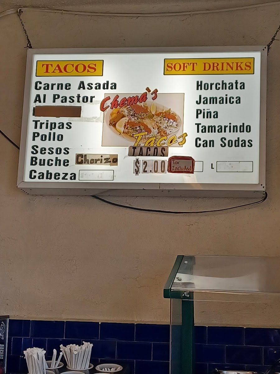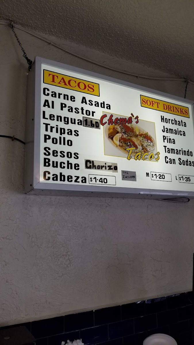 Chema's Tacos, located at 11527 Whittier Blvd, Whittier, CA, is a gem for taco enthusiasts. With an enticing menu featuring delectable options like Asada Steak and Alpastor, each taco is priced affordably at just $1.50. The quality of the food is exceptional, showcasing bold flavors and generous portions, drawing rave reviews from loyal customers who praise its authenticity and great service. The vibrant atmosphere and quick service make it an ideal spot for dining in or taking out. Whether you're a local or just passing through, Chema's Tacos is a must-visit for true taco lovers!